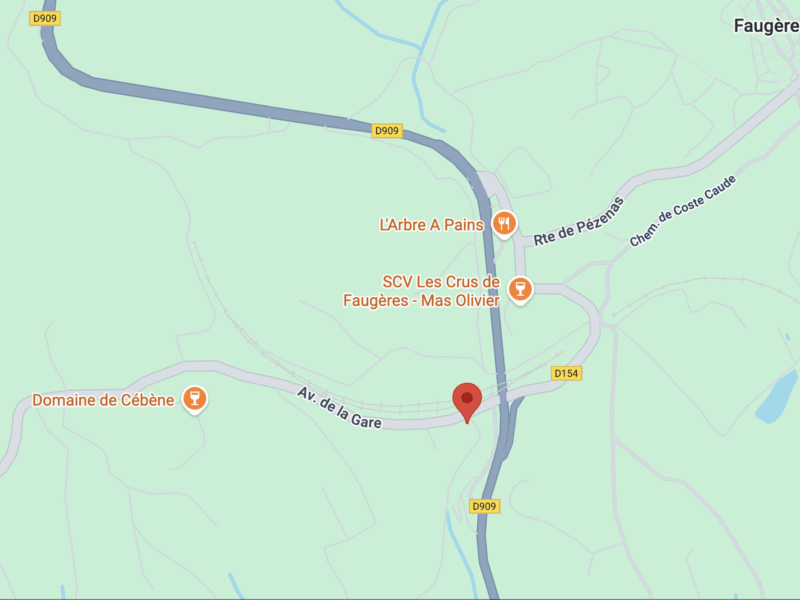 – De Pézenas, suivre Roujan / Bédarieux, traverser Faugères, prendre à gauche au niveau des « Grands Vins du Terroir » direction Béziers suivre Caussiniojouls, première maison à gauche en entrant dans Faugères gare.