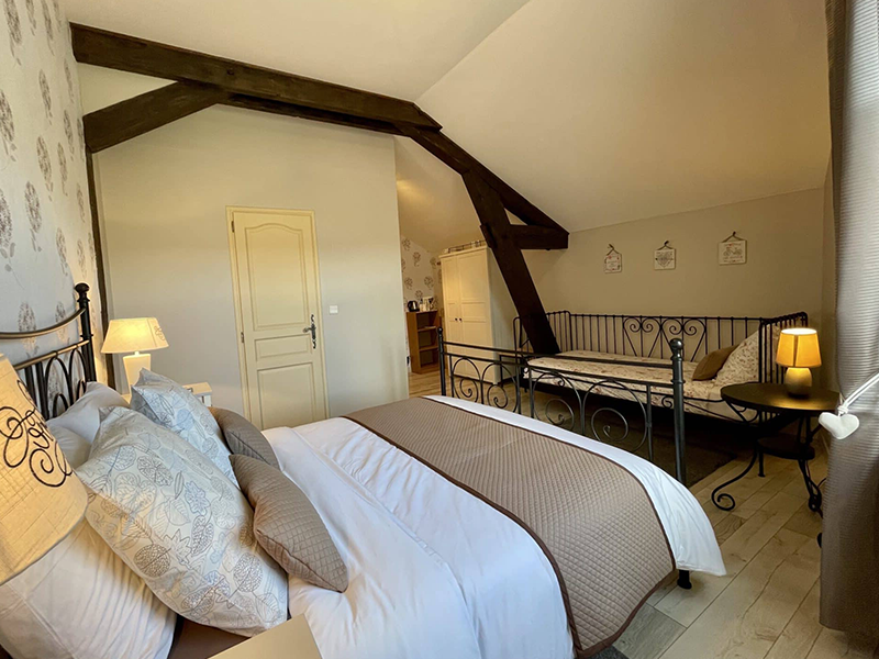 Chambre offrant 25 m2, possible pour 3 personnes, où les enfants et les adultes s’y sentiront à leur aise.
